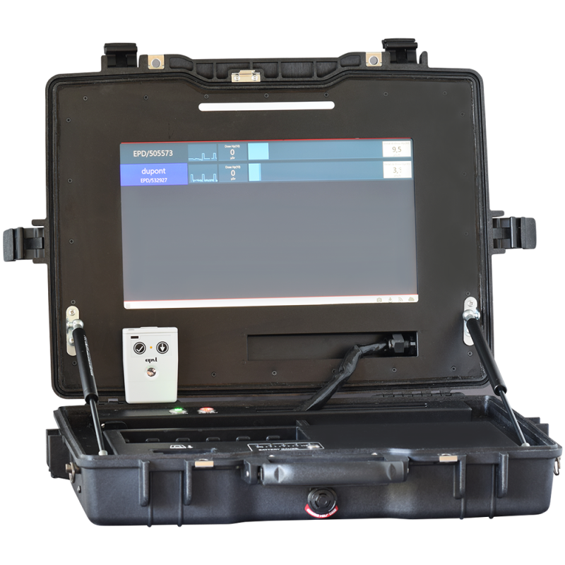 Les bornes de supervision SCT permettent de contrôler en temps réel les dosimètres EPD Mk3 BGT et EPD N3T, ainsi que les radiamètres de la gamme RadEye. Leur grand écran et le logiciel de supervision permettent un suivi simplifié en temps réel de l’évolution de la dose, des débits de dose et des alarmes, pour la surveillance d’une équipe d’intervenants.