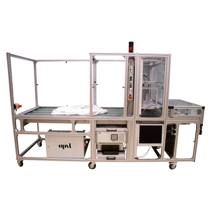 Les contrôleurs de linge sont équipés de deux compteurs large surface pour la détection d’une contamination des vêtements. Ils sont fournis avec le logiciel FHT 1320. Les objets à mesurer sont disposés sur un tapis roulant les transportant vers le système de détection. Le compteur supérieur est relié à un système de levage, l’autre compteur est fixé sous le tapis roulant. En cas de contamination, une alarme sonore et visuelle retentit, la mesure est interrompue et le tissu contaminé est retiré du tapis roulant.