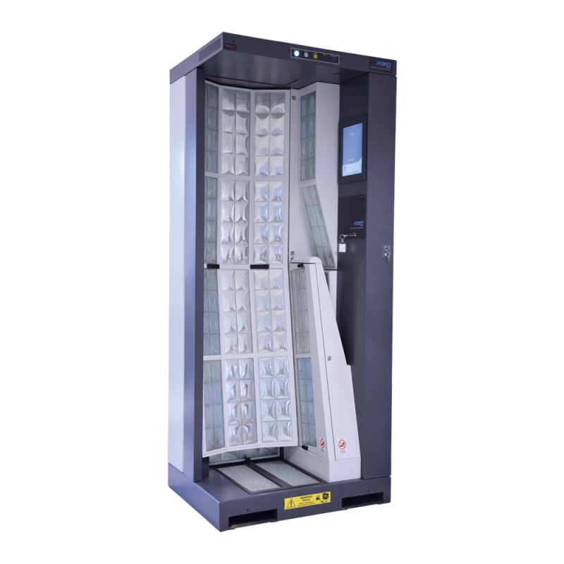 L’iPCM12 est un portique de contrôle de contamination du personnel, pour la détection des sources de rayonnement alpha et bêta. L’iPCM12 utilise 21 détecteurs pour le contrôle du corps, des mains et des pieds. Ces détecteurs sont divisés en 4 zones de détection pour minimiser l’impact du bruit de fond pendant le contrôle et atteindre les meilleurs seuils de détection. Deux détecteurs (en option) peuvent être installés pour contrôler le côté des pieds et le dessus de la tête.