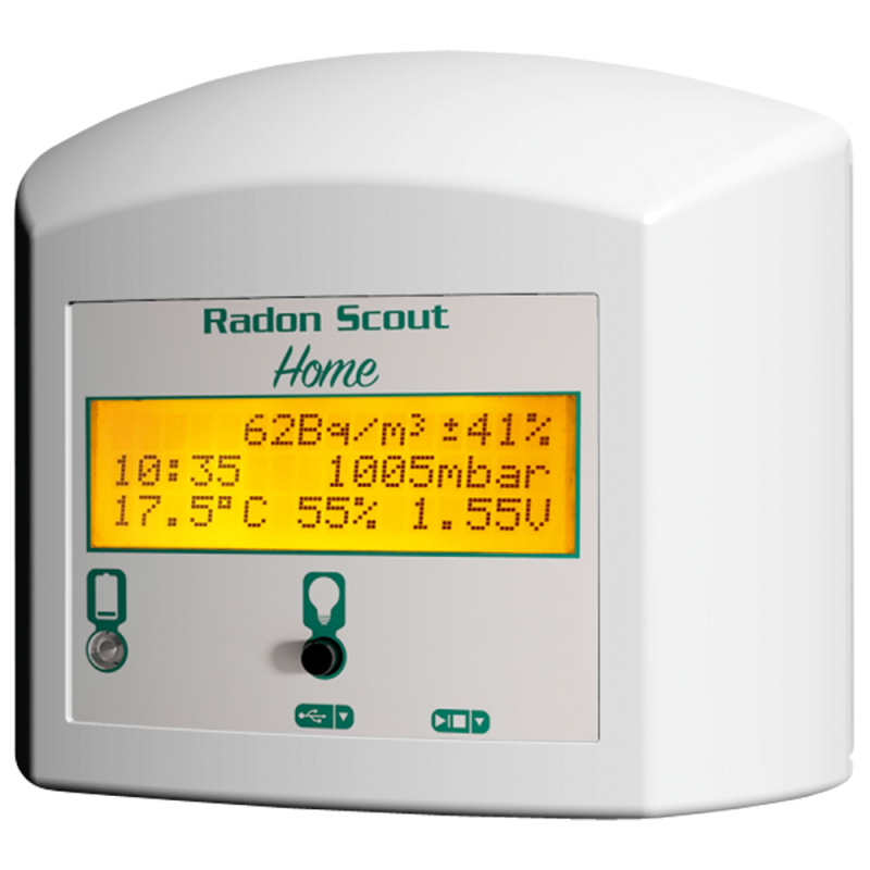 Le Radon Scout Home est spécialement conçu pour contrôler, mesurer et enregistrer les variations de la concentration en Radon dans les établissements publics et les lieux de travail. Il permet une surveillance fiable pendant plusieurs années en intégrant également les influences des conditions climatiques et les changements de saisons. Les données de mesure peuvent être consultées à tout moment et des capteurs de température et d’humidité indiquent si le climat intérieur est sain.